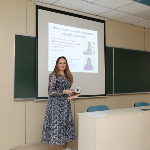 Тим поводом, уприличен је програм добродошлице и присутне студенте поздравила је проф. др Данијела Рајтер-Ћирић, продекан за организацију и финансије. Студентима Департмана за хемију, биохемију и заштиту животне средине посебно се обратила проф. др Јасмина Агбаба, директор Департмана.