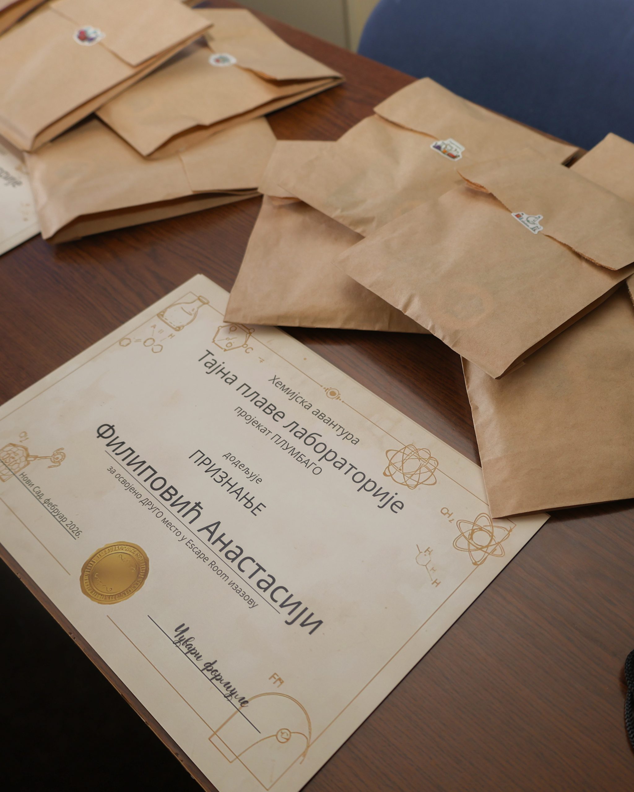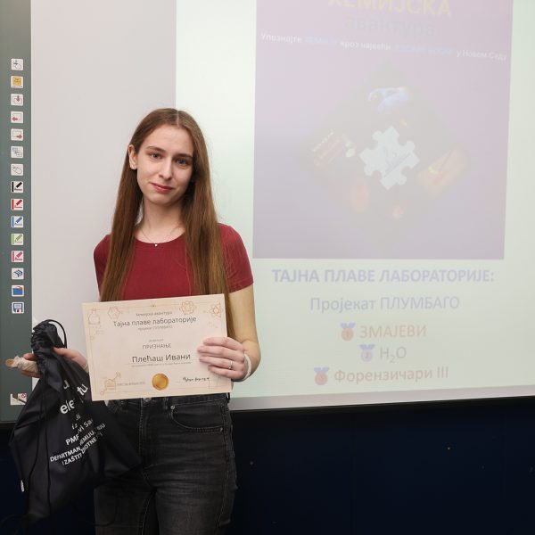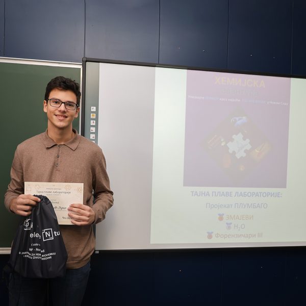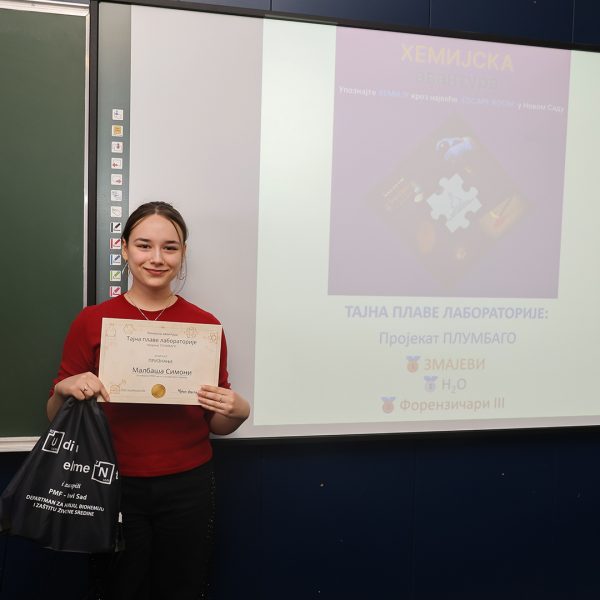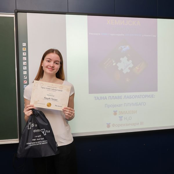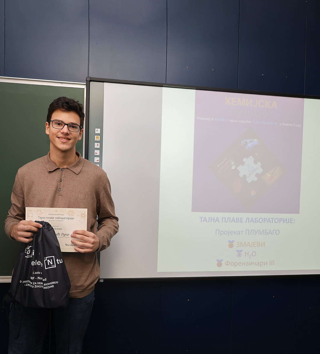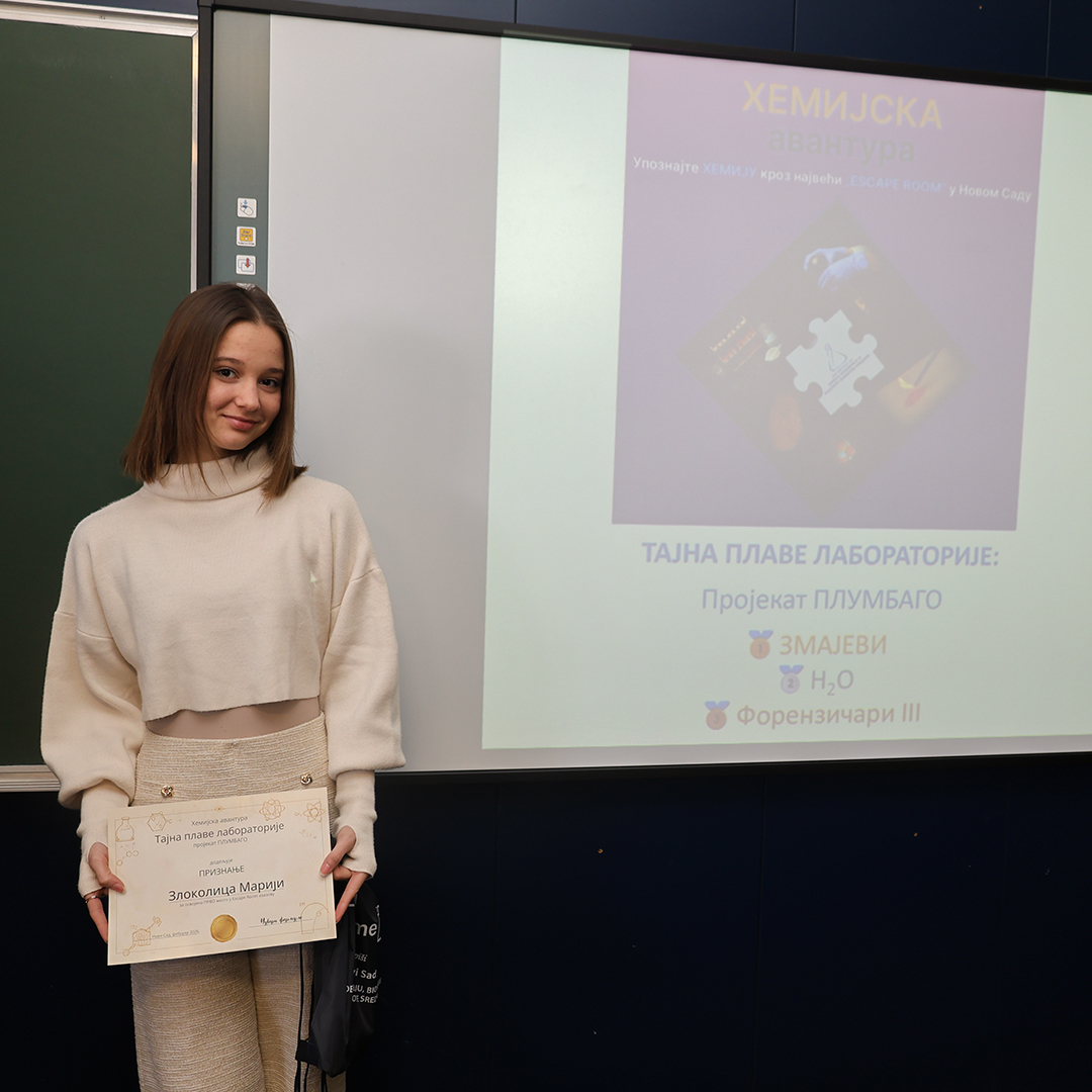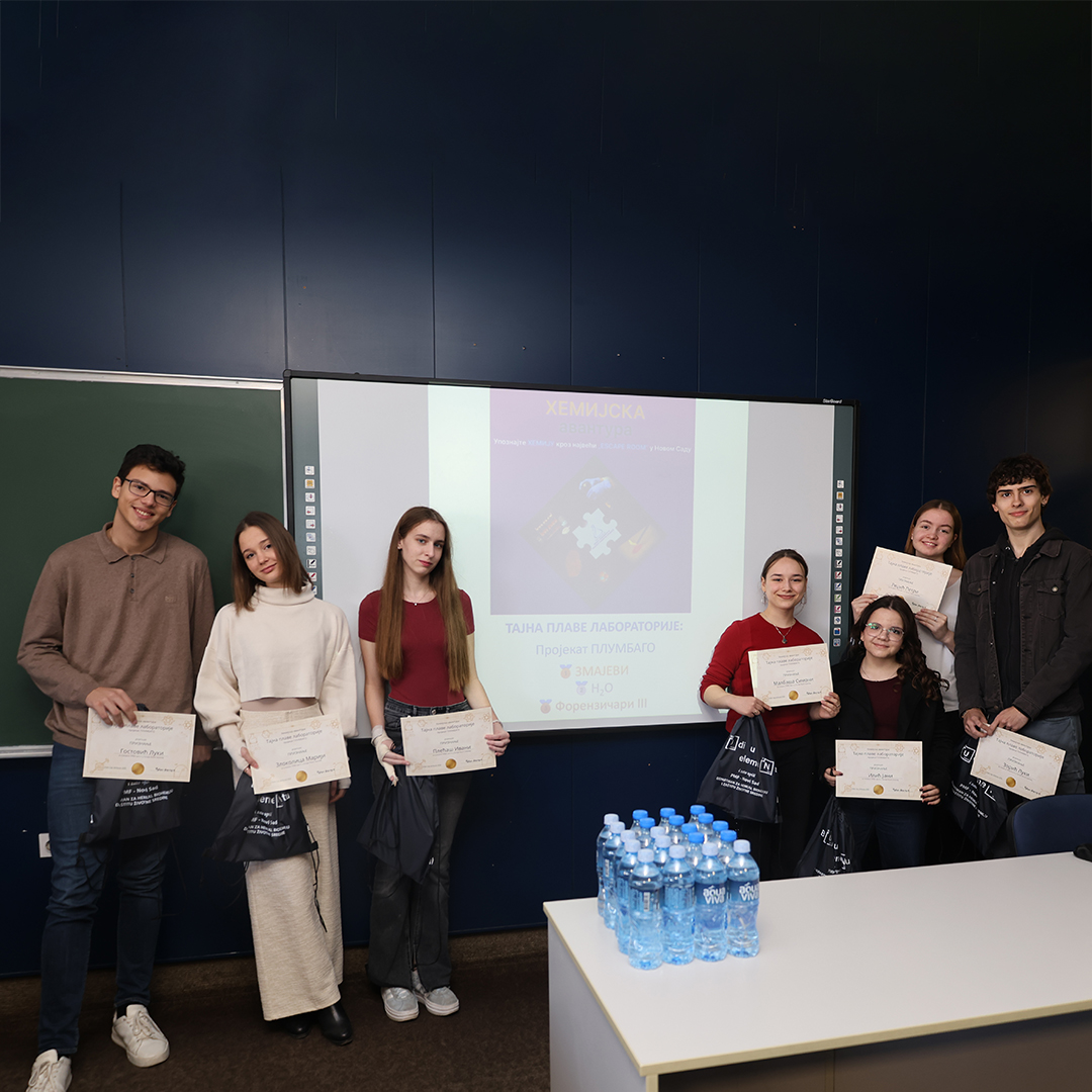 На Природно-математичком факултету у Новом Саду одржана је свечана додела награда учесницима едукативног догађаја Escape room „Хемијска авантура – Тајна плаве лабораторије: пројекат ПЛУМБАГО”, који је окупио средњошколце заинтересоване за хемију, логику и тимски рад.